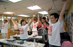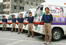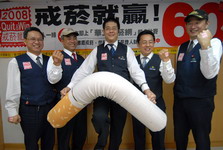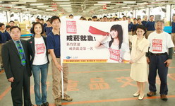 2008.04.19新竹貨運百名司機「戒菸就贏」大誓師 「戒菸就贏」專車浩蕩啟動 新竹貨運積極鼓勵服務團隊決志戒菸;僅三重營業所130多位司機同仁,就有超過90位報名參賽;全公司更有近2000名司機化作「拒菸天使」,配戴禁菸徽章主動發送簡章報名表。