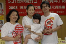 2008.04.02活動開始報名記者會 演藝圈銀色夫婦何豪傑及和家馨率先響應,成為本屆活動第一組報名者 演藝圈銀色夫婦何豪傑及和家馨,帶著一歲多的小皮皮,率先成為2008「戒菸就贏比賽」第一個報名組,由和家馨擔任不吸菸的見證人,支持何豪傑參賽戒菸。