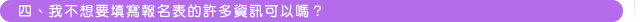 不行喔!因本次活動有高額的獎金與獎品,並且此為國際大會規定的資料呈報方式,若您想要參加2008「 戒菸就贏比賽」及現金抽獎活動,請務必填妥報名表上的所有資料,感謝您的配合!