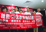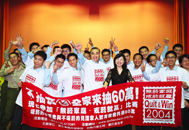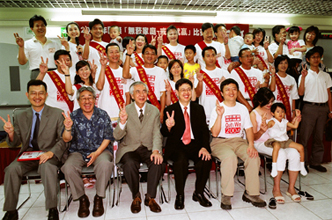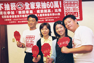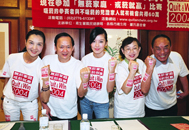 拒絕吸菸與貧窮、戒菸比賽得獎人公開檢測記者會 由左至右分別為:三十萬得獎人曹世偉、國健局副局長趙坤郁、終生義工陳淑麗、林信和律師、董氏基金會執行長葉金川、六十萬得獎人張建國 。