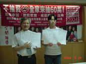 林信和律師(左)及國健局彭仁信先生為戒菸比賽抽獎見證。