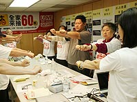 活動將於5月2日正式開跑,為了表達戒菸的決心,終身義工陳淑麗、義工周子寒與本會執行長共同穿著Quit&Win的T-shirt,於29日齊聚南京東路捷運站,拉著「不抽菸全家來抽60萬」的紅布條,與參賽者大聲齊呼「2006戒菸就贏、成功戒菸」共同號召其他吸菸者加入戒菸行列,街頭宣示「愛家‧戒菸就贏」號召,大家逗陣來戒菸。